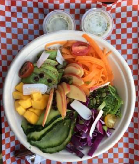 My husband ordered a burger of the day which was lamb burger with brebis and i - salmon poke bowl . Both dishes beatifully cooked and presented . My poke bowl was tasty, fresh and balanced . Very happy